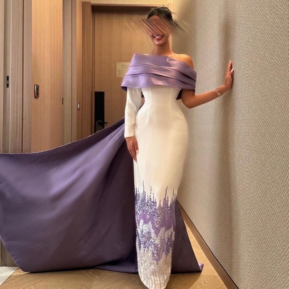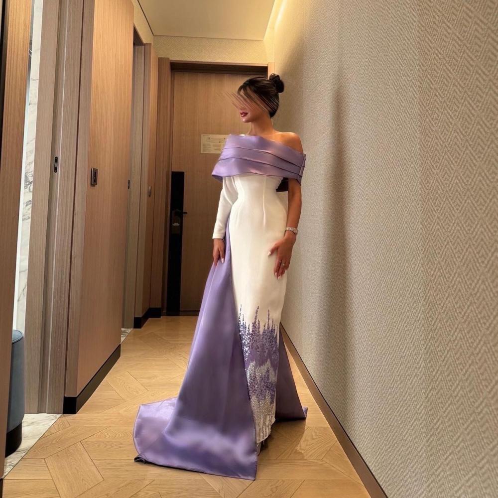 فستان سهرة مميز بلون ** الموف مع اف ويت **