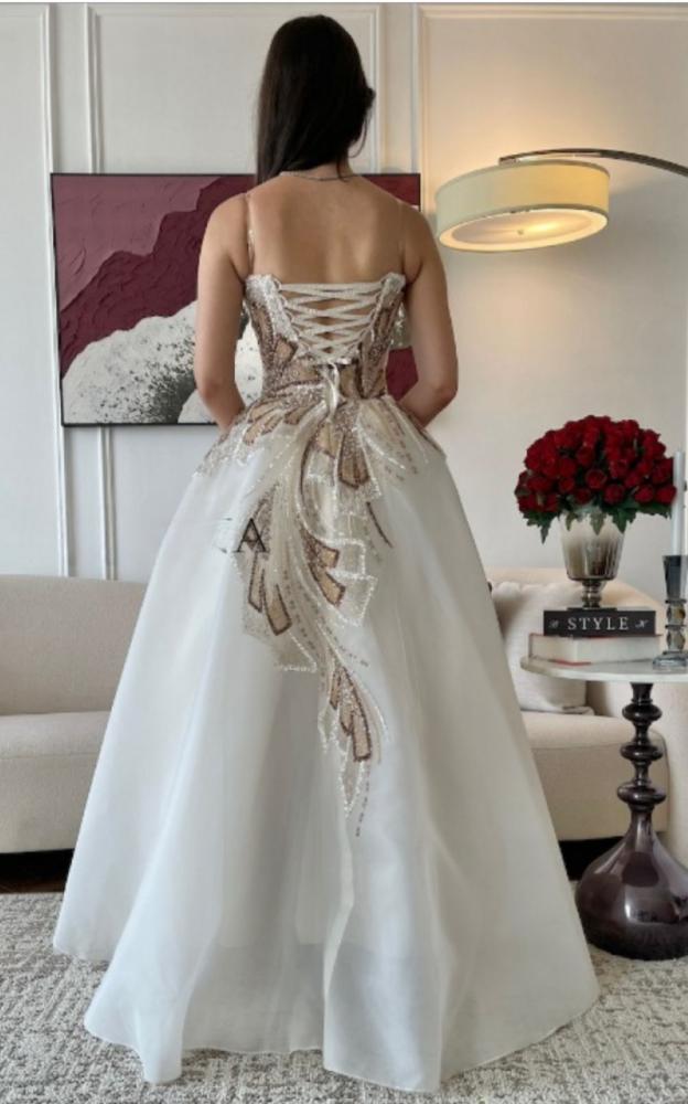 تميزي بإطلالة أنيقة ومفعمة بالأنوثة مع هذا الفستان الجذاب والراقي ، المصمم بأسلوب راقٍ يجمع بين الفخامة والنعومة. ، ليضيف لمسة رومانسية راقية.