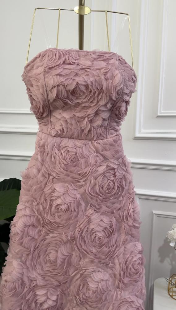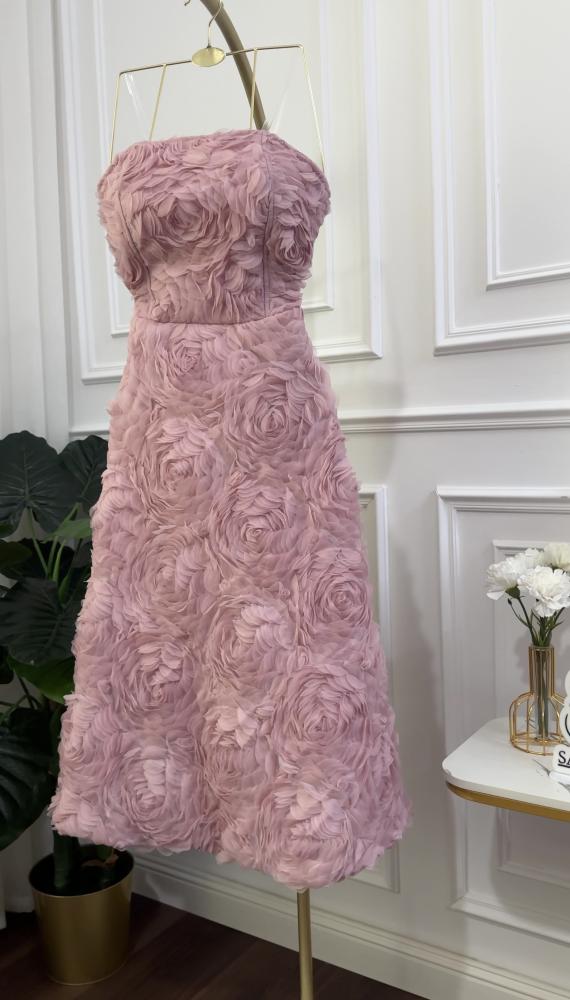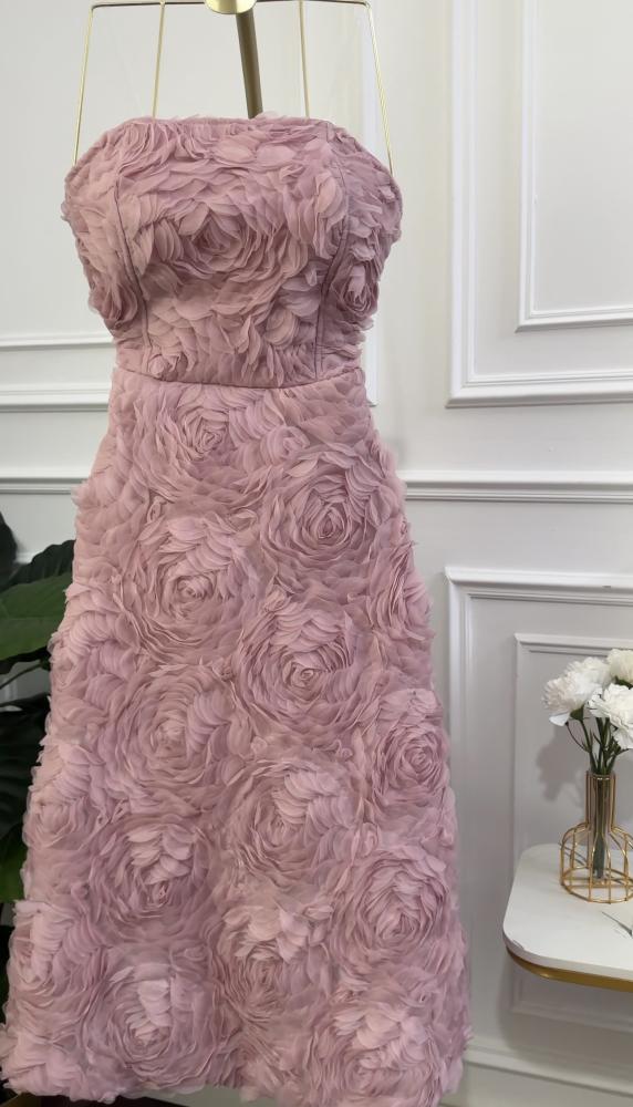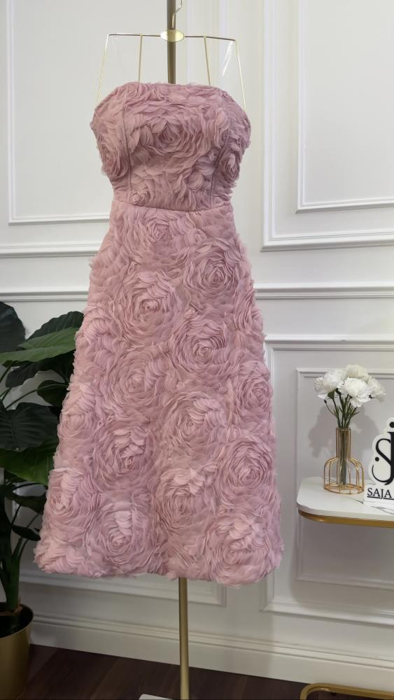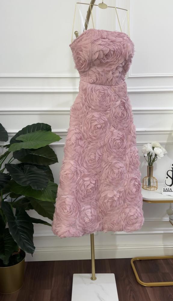 فستان بتصميم كلاسيكي راقٍ، مصنوع من القماش ) / ورود بارزة ) / يتميز بقصة انسيابية تضفي لمسة أنوثة وجمال على إطلالتك.