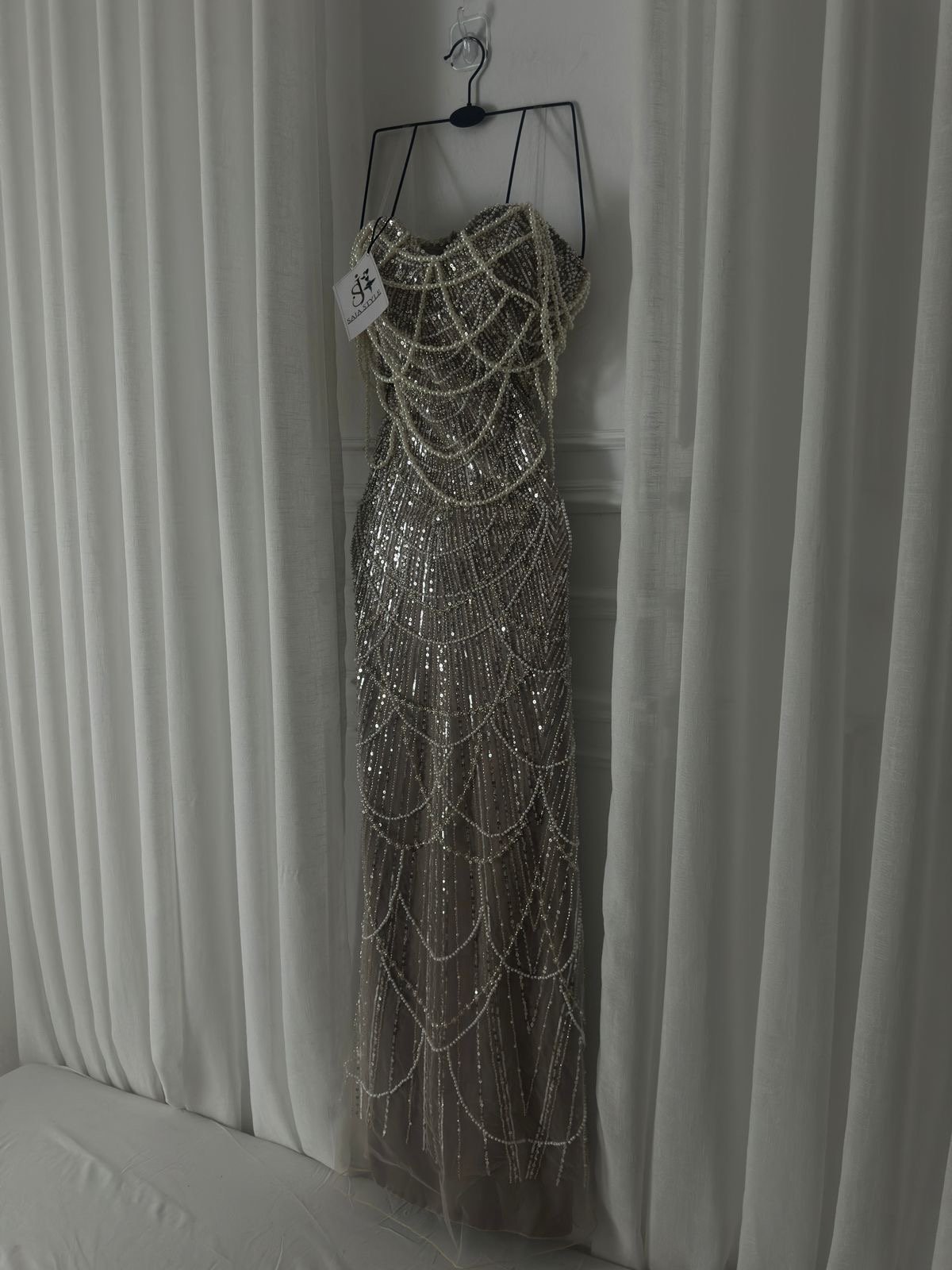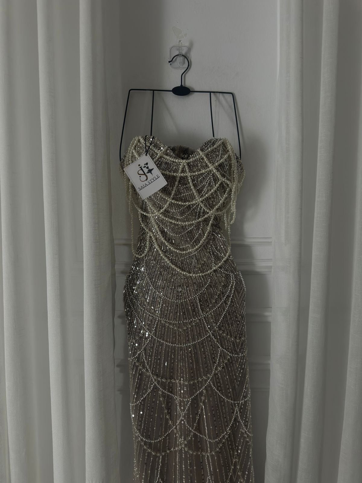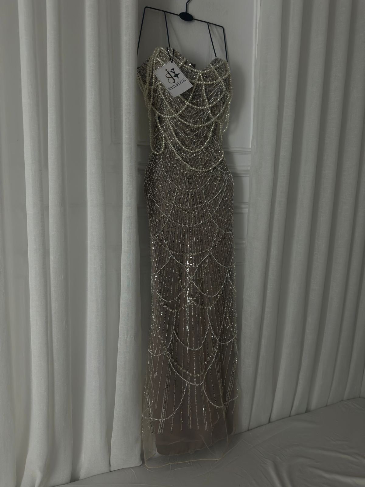 تل مطرز بتطريز الترتر مع اللؤلؤ بالكامل