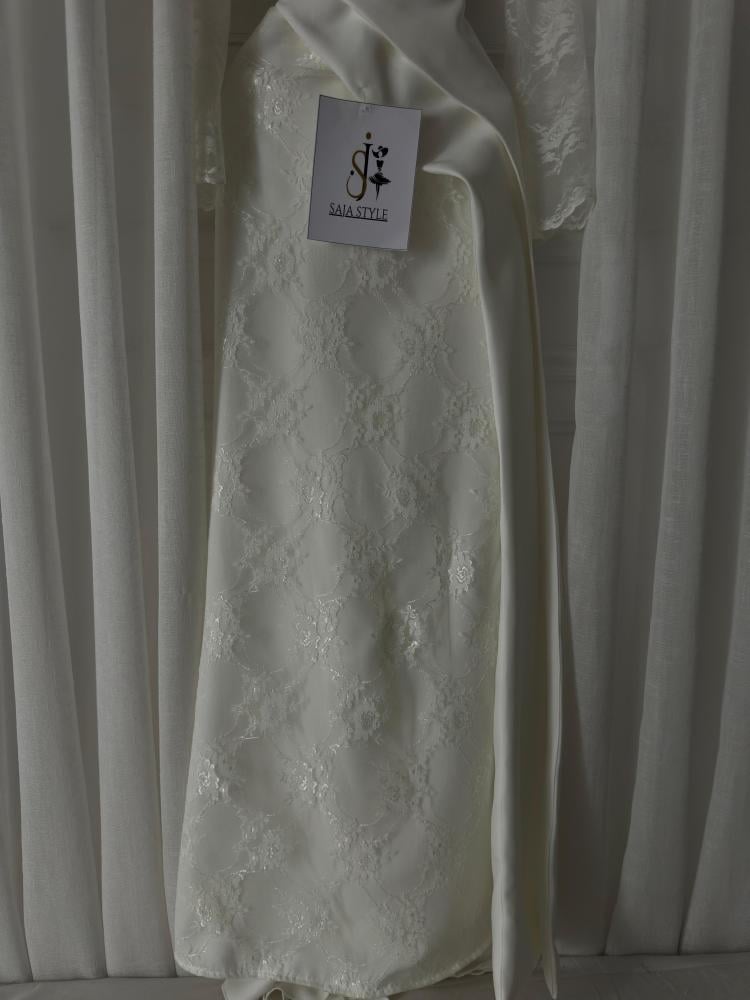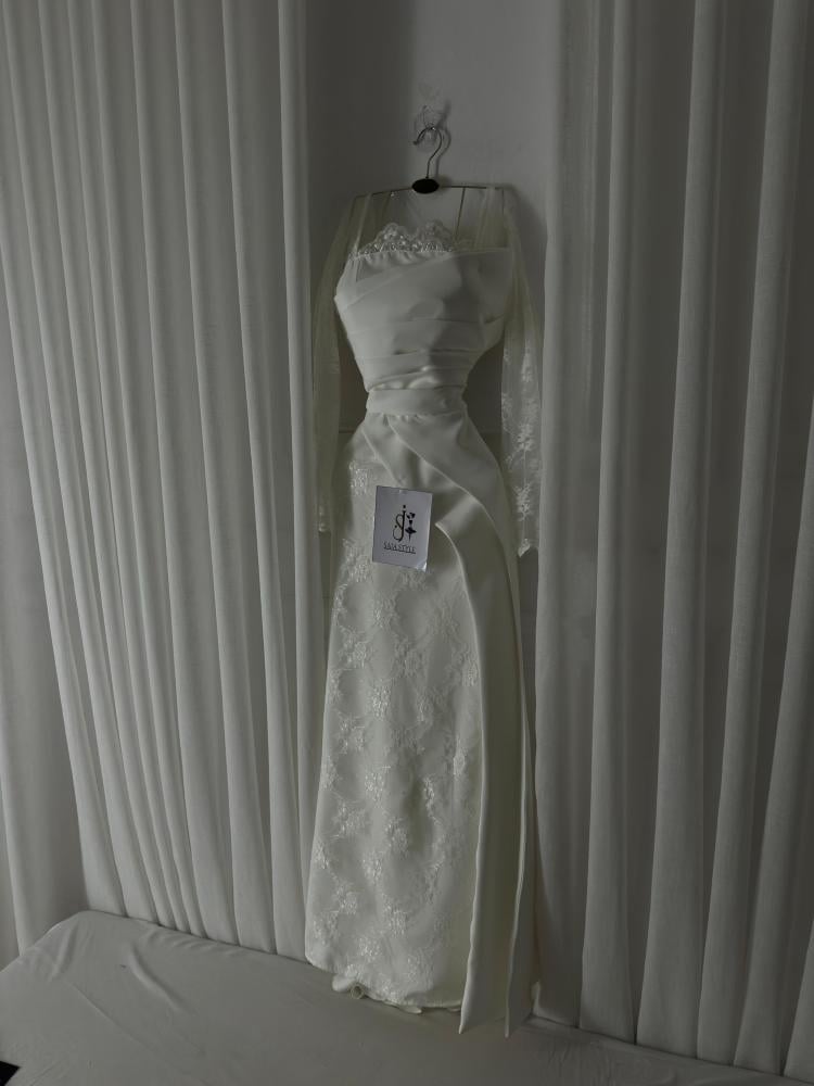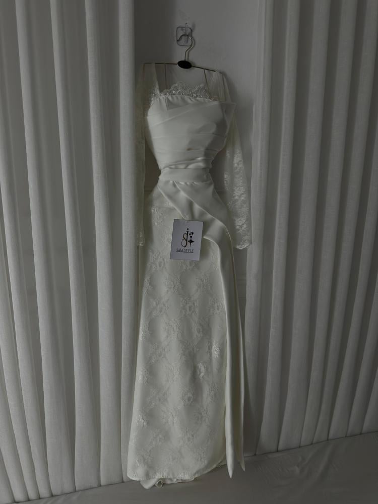 فستان سهرة ناعم مصنوع من قماش الدانتيل مع باربي بذيل انيق تصميم انيق وعصري