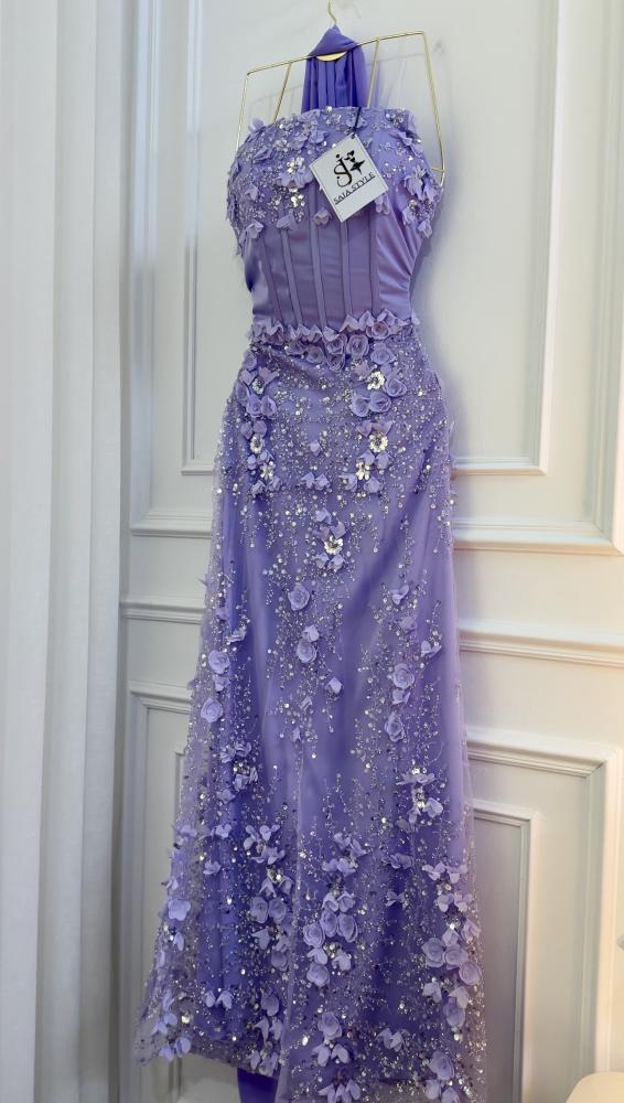 تميّزي بإطلالة أنثوية راقية مع هذا الفستان الفاخر بلونه الموف الفاتح.
